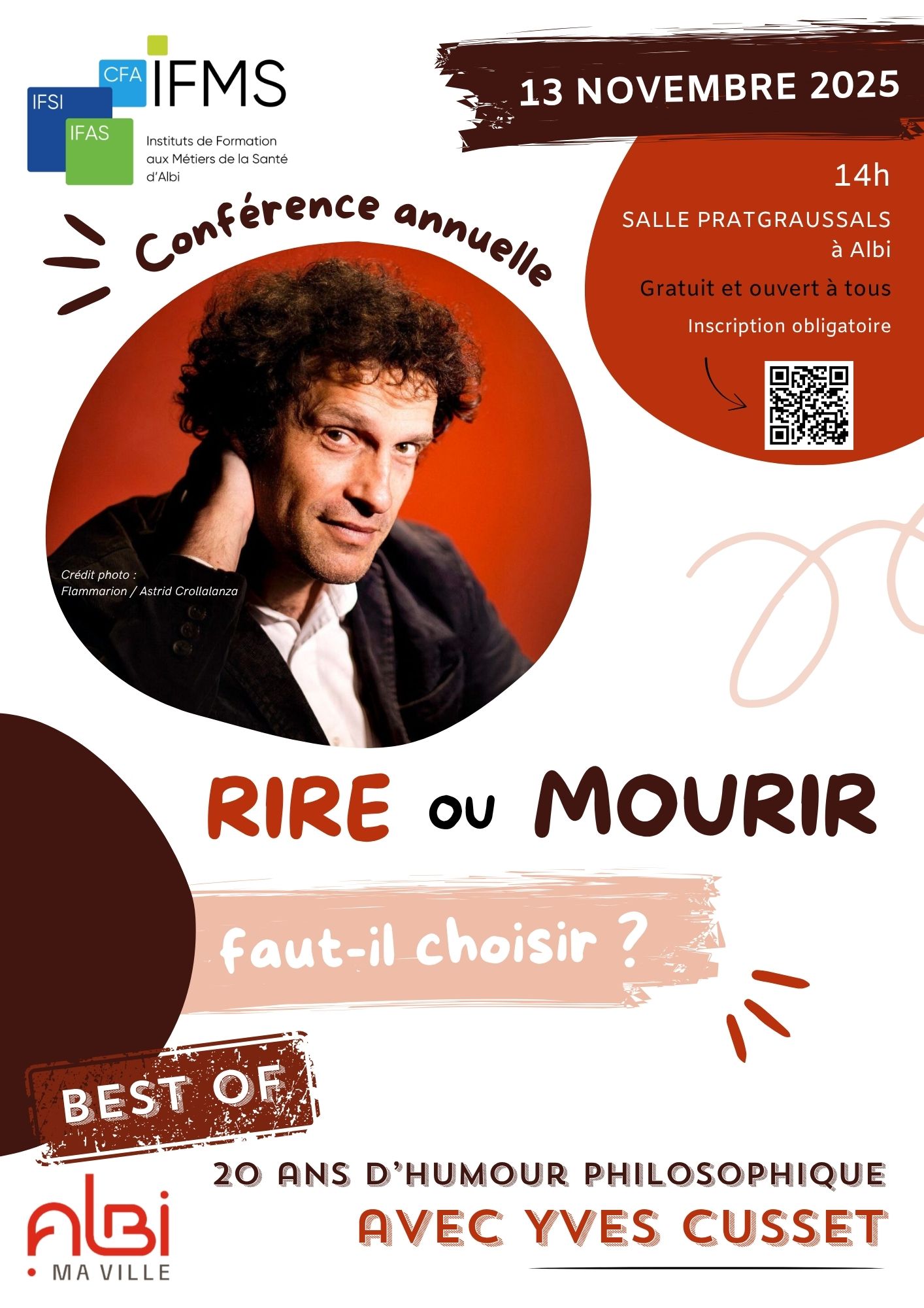 En partenariat avec la ville d'Albi, nous proposons la conférence " Rire ou mourir, faut-il choisir ?" menée par Yves CUSSET.